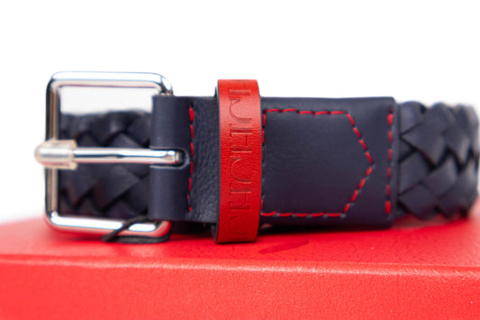 CINTURÓN CH TRENZADO AZUL NAVY Y ROJO