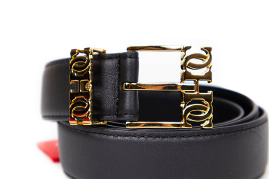 CINTURÓN CH NEGRO CON HEBILLA DORADA DE LOGO