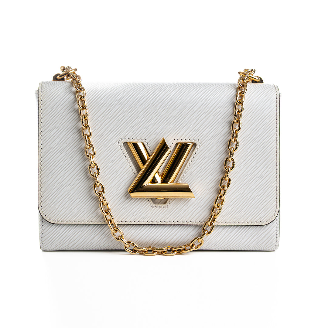 Confeccionado en piel Epi blanca, el bolso tiene un cierre giratorio LV de color dorado como los herrajes. El cuero suave está trenzado en los eslabones metálicos de la correa de la cadena. Una almohadilla de hombro ajustable en cuero asegura un transporte cómodo. En su interior posee dos bolsillos. Cuenta con certificación Entrupy y dustbag.